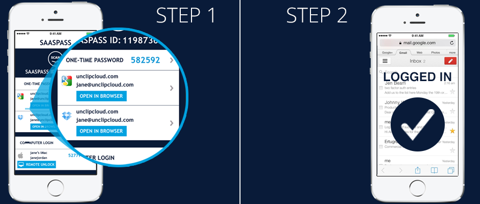 SAASPASS offers On Device Login with two-factor authentication running seamlessly in the background. On Device Login is part of the family of secure Instant Login services, that also includes Scan Barcode and Proximity (for iBeacon and BLE enabled devices).